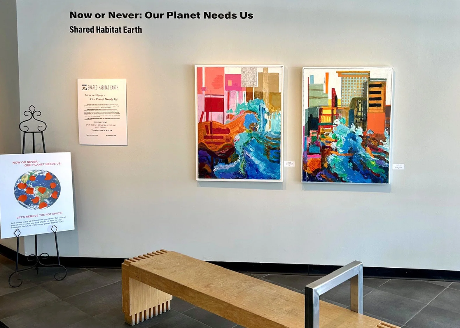 Through painting, sculpture, fiber art and photography, the artists of Shared Habitat Earth dramatize the tension between what humanity has enjoyed for thousands of years, and what will be left if we don’t act now.
