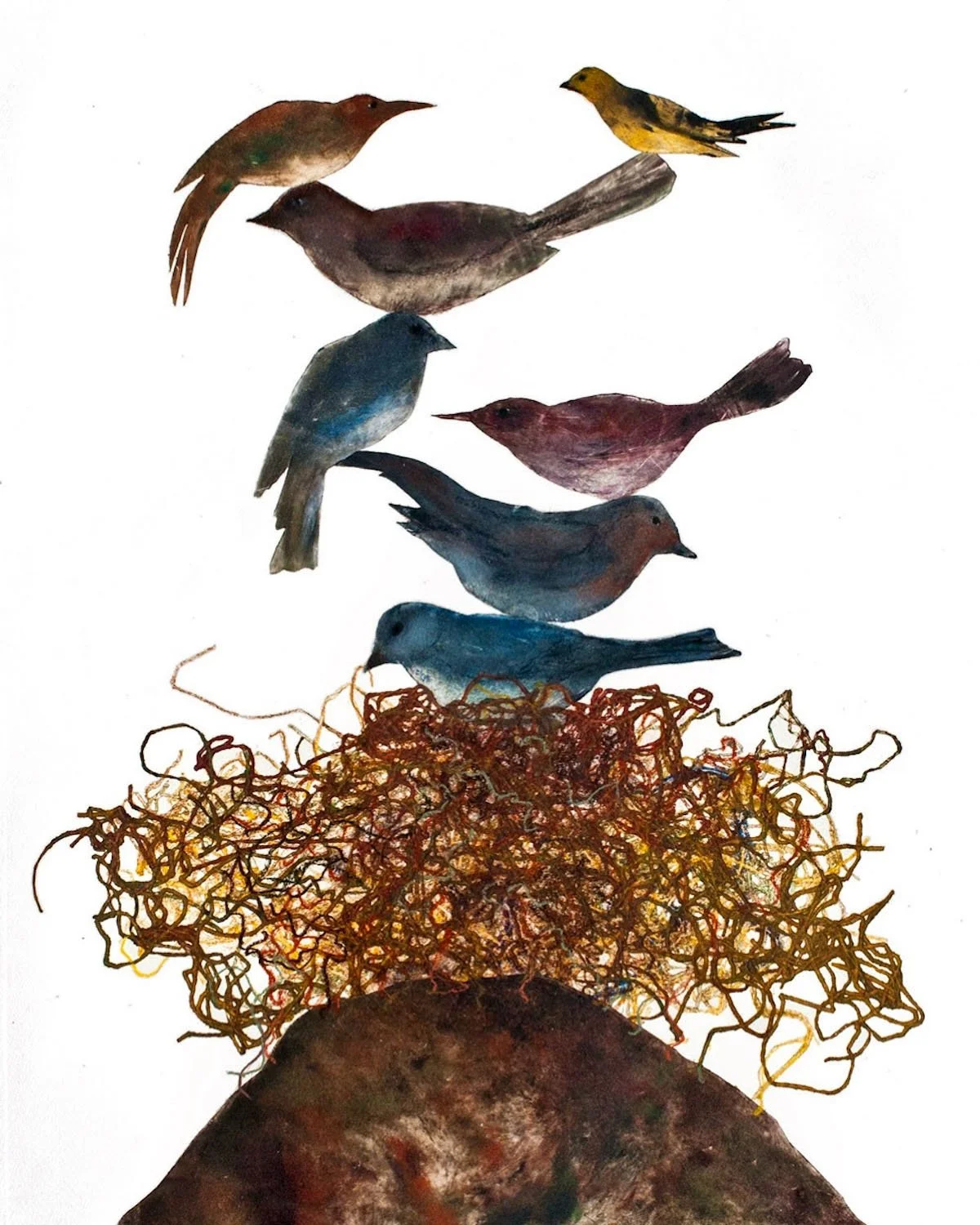 Sharon Whitham, Fragile Balance, monotype oil on paper, 32 x 22 in.